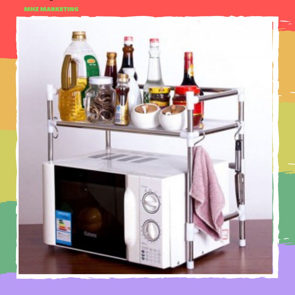 Ready Stock In Malaysia Stainless Steel Kitchen Microwave Stand Oven Shelf Spice Storage Bakers Rack
